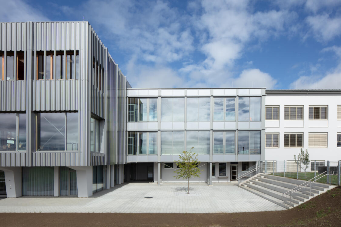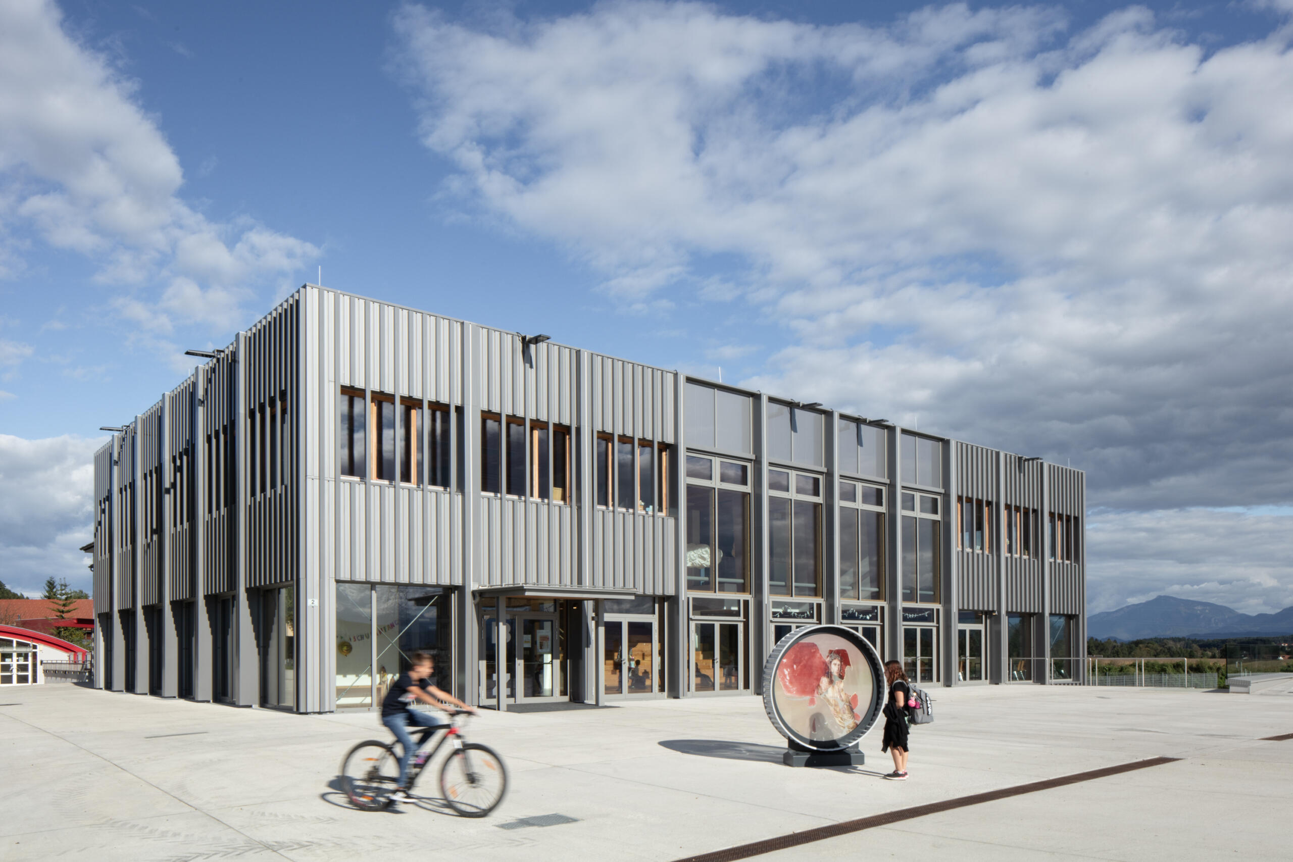 Ausgehend von dem Ergebnis des Architekturwettbewerbes Anfang 2020 planen die Magdalensberger Infrastruktur- und Finanzierungs GmbH (MIG) und die Marktgemeinde Magdalensberg eine Erweiterung der Volksschule Magdalensberg in Deinsdorf. Das neue Gebäude wird westlich von der bestehenden Volksschule errichtet und über eine Fußgängerbrücke mit dieser verbunden. Der neue Eingang befindet sich an der Westseite des neuen Schulgebäudes und ist über den davor liegenden Platz erreichbar. Das Erdgeschoß wird offen gehalten und stellt somit eine Beziehung zum Außenbereich (Marktplatz etc.) her. Auch die Platzierung der Trennwände ist flexibel gehalten, um möglichst vielen diversen Veranstaltungen Platz zu bieten. Somit bildet das Erdgeschoß einen großen, multifunktionalen Raum, welcher u.a. Garderobe und Mediathek beherbergt. Über eine Arena und den darüber liegenden Luftraum wird das Erdgeschoß mit dem Obergeschoß verbunden. Im Obergeschoß entstehen insgesamt vier neue Klassen und zwei Gruppenräume, wobei jeweils zwei Klassen und ein Gruppenraum ein Cluster bilden. Auch im Bestandsgebäude wird im Erdgeschoß und Obergeschoß jeweils ein solcher neuer Clusterbereich geschaffen. Im Untergeschoß des Zubaus wird die Musikschule untergebracht, welche über einen separaten Eingang im Süden verfügt. Lager und Technik für die gesamte Schule sind im nördlichen Bereich des Untergeschoßes untergebracht.