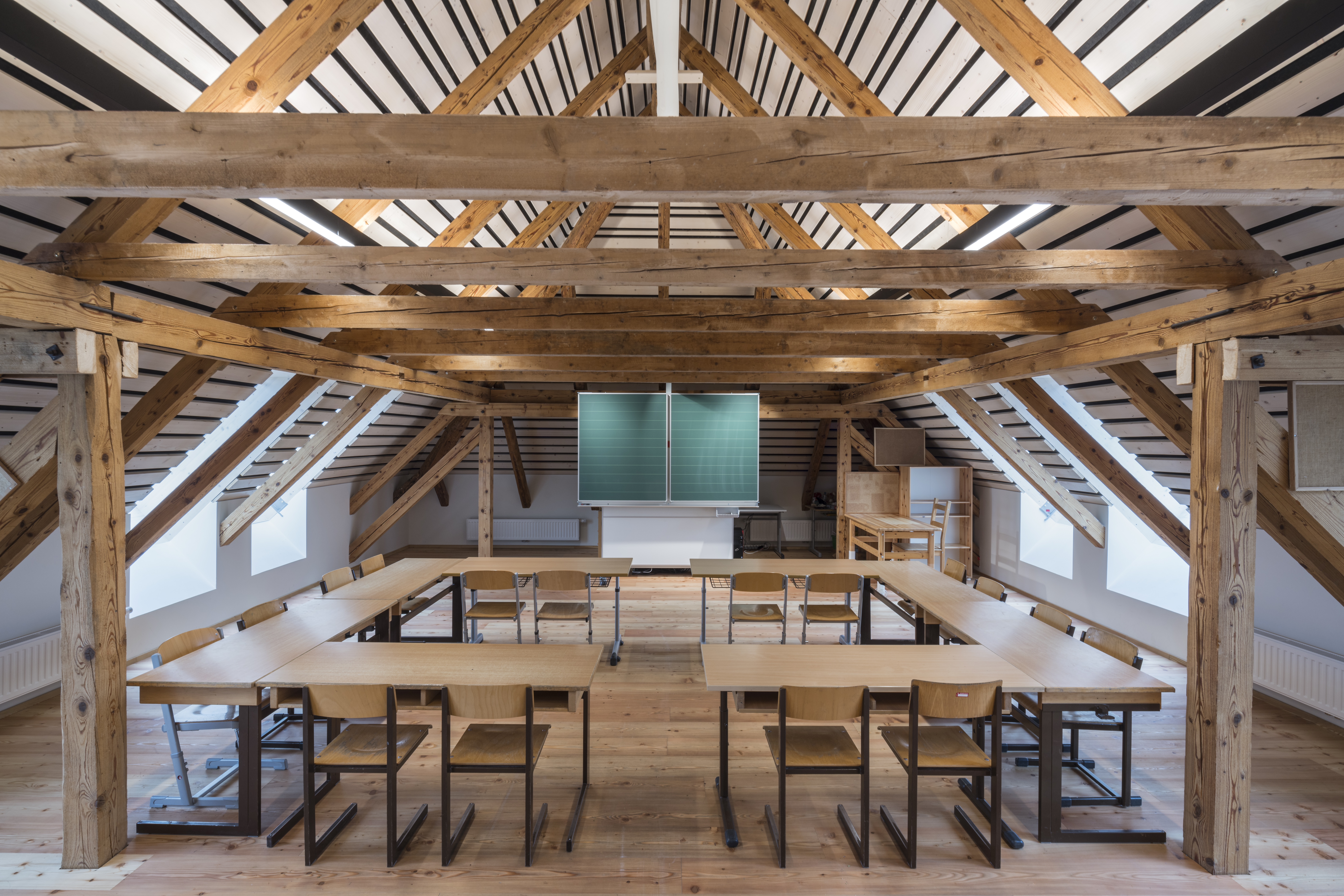 Geplant war eine hochwertige Sanierung des Gebäudes, um es barrierefrei zugänglich zu machen. Die wesentlichen Elemente des Sanierungs- und Umbaukonzepts umfassten die barrierefreie Erschließung des gesamten Altbaus sowie die Umgestaltung des Untergeschosses und die Umnutzung des Dachgeschosses. Durch gezielte strukturelle Anpassungen wurde das bestehende Schulgebäude in eine adaptierte Version einer Clusterschule umgewandelt. Die Klassenräume wurden jeweils neben Gruppenräumen und offenen Lernbereichen angeordnet, die frei zum Lernen, Treffen und Entspannen genutzt werden können. Die Sanierungsmaßnahmen führten zu einem erheblichen Mehrwert des Gebäudes hinsichtlich nachhaltig bestehender Gebäudequalität und Nutzer:innenkomfort.